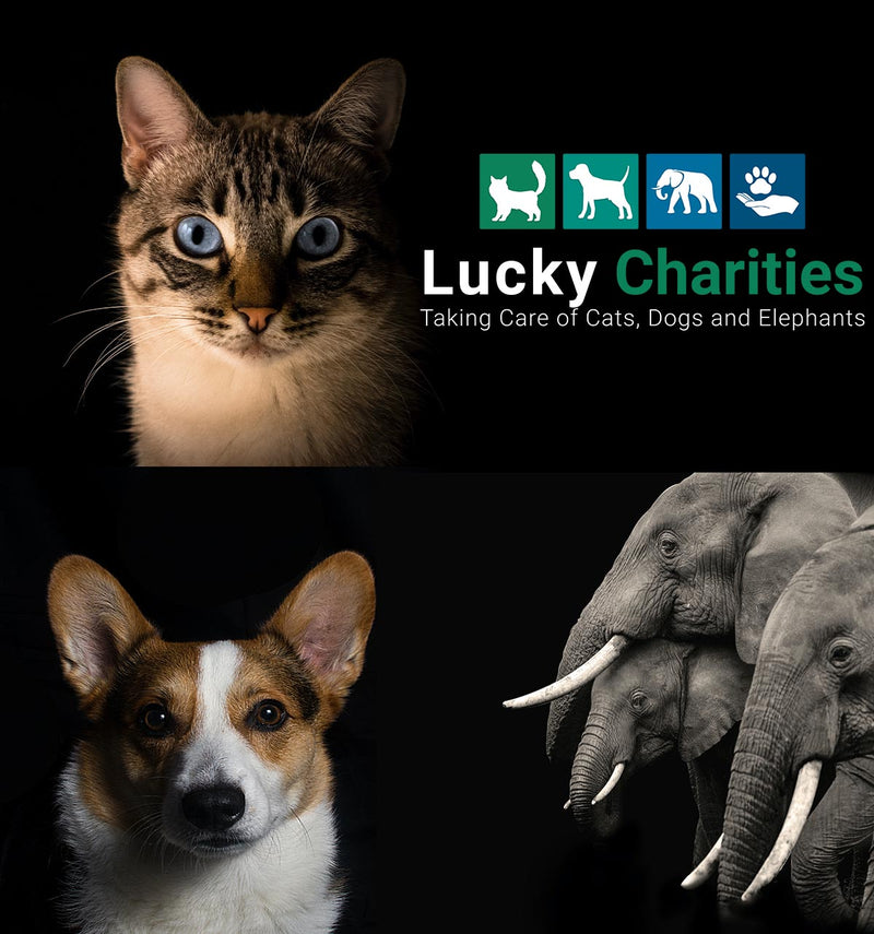 Our Non Profit, Lucky Charities, is responsible for distributing our donations as well as the donations from other donors to help rescue/give better treatment to cats, dogs and elephants and they give to those people in need who love and care for them.